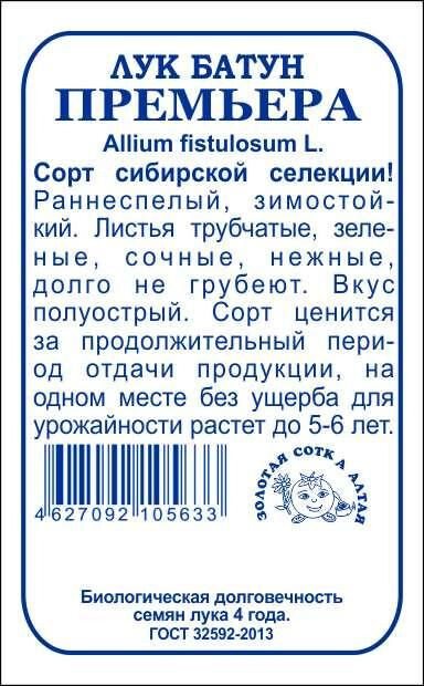 Сорт раннеспелый, зимостойкий, ценится за продолжительный период отдачи продукции, раннее отрастание зелени и высокое содержание витаминов. Листья трубчатые, высотой 37-45 см, диаметром до 1,5 см, зеленые, сочные и нежные, долго не грубеют. Вкус полуострый. Используют в свежем виде, домашней кулинарии, для заморозки и сушки.