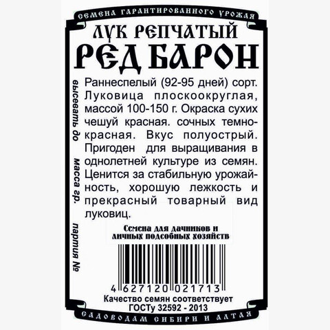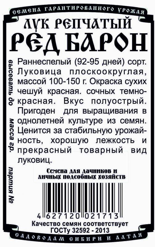 Раннеспелый (92-95 дней) сорт. Луковица плоскоокруглая, массой 100-150 г. Окраска сухих чешуй красная. сочных темно-красная. Вкус полуострый. Пригоден для выращивания в однолетней культуре из семян. Ценится за стабильную урожайность, хорошую лежкость и прекрасный товарный вид луковиц.