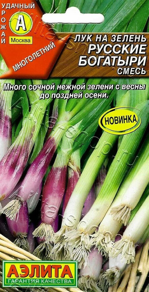 Смесь двух популярных сортов многолетнего лука. Первую зелень в год посева можно получить через 45-50 дней после всходов; на второй и последующие годы – через 20- 30 дней после начала отрастания. Растения крупные, со множеством ложных стеблей, высотой 60-70 см и массой до 100 г. Листья длинные, сочные, нежные, приятного полуострого вкуса. Сорта зимостойкие, устойчивые к болезням культуры, обладают длительным сроком отдачи зеленого пера. Урожайность за сезон около 5 кг/м2.