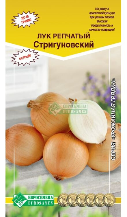 Вряд ли найдется человек, который не ест репчатый лук – полезные свойства его известны каждому. Это один из самых популярных и доступных овощей, ингредиент номер один для мясных блюд, супов и салатов. Он усиливает вкус, дарит аппетитный аромат. Продукт улучшает функцию мозга, защищает от гриппа и препятствует образованию тромбов. Стригуновский - популярный и любимый многими огородниками сорт. Урожайный и скороспелый сорт: от всходов до технической спелости 85-95 дней. Луковицы округлые, золотистые, массой 45-80 г. Покровные чешуи золотисто-жёлтые, сочные - белые. Вкус острый и яркий! Урожай долго хранится. При ранневесеннем посеве товарные луковицы вырастают за один год. Урожайность 1,2-3,3 кг/кв.м.