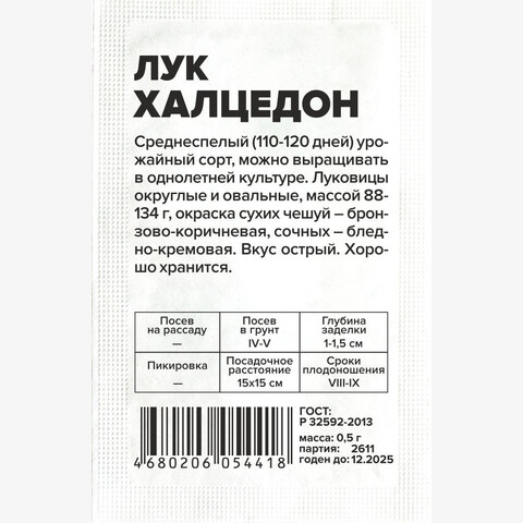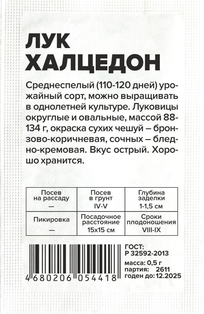Среднеспелый (110-120 дней) урожайный сорт, можно выращивать в однолетней культуре. Луковицы округлые и овальные, массой 88-134 г, окраска сухих чешуй — бронзово-коричневая, сочных — бледно-кремовая. Вкус острый. Хорошо хранится. Место посадки: плодородные рыхлые нейтральные почвы. Размещается после бобовых, капусты, раннего картофеля Освещение: обильное, плохо переносит затенение Предпосевная подготовка: инкрустированные семена (покрытые цветной оболочкой) не требуют подготовки. Необработанные семена (черные) на 15 минут замочить в термосе с водой температурой 45-50°C или спиртовом растворе Сроки посева: на рассаду сеют за 50-60 дней до высадки в грунт (январь-март), в теплых регионах допускается ранний посев в грунт (начало апреля) Посев на рассаду: семена раскладывают на уплотненной хорошо увлажненной почве. Рядки размещают на расстоянии 3-4 см, между растениями оставляют 2-3 см, обильно поливают горячей водой, накрывают пленкой. До появления всходов размещают в теплом месте +27-30°С. После появления петелек пленку снимают Посев в грунт: семена высевают на глубину 1,0-1,5 см. Схема посадки 15х15 см Пикировка/перевалка: для получения крупной репки проводят перевалку сеянцев при достижении высоты 15 см в отдельные высокие стаканы объемом 0,5-0,7 л в рыхлый плодородный грунт (в почвогрунт рекомендуется добавлять до 50% песка). Высадку в грунт проводят при среднесуточной температуре +8-10°С. Не боится снижения температуры до 2-3°С. Уход: на рассадном этапе допускается стрижка лука на 1/2 высоты при полегании пера. После высадки обязательно притеняют на 5-7 дней. После полива проводят аккуратное рыхление междурядий. Чтобы получить крупный репчатый лук, перо на зелень не срывают Сбор урожая: производят, когда 70% листьев начнут желтеть и полегать (обычно в августе). Луковицы выкапывают и хорошо просушивают. Хранят в темном прохладном помещении