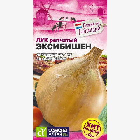 Среднепоздний (130 дней) салатный сорт для выращивания в однолетней культуре. Луковица овальная, крупная, с желтой чешуей, массой 170-550 г (до 1 кг при выращивании через рассаду). Идеален для потребления в свежем виде. Нежный, сладкий вкус лука украсит любой салат. Место посадки: плодородные рыхлые нейтральные почвы. Размещается после бобовых, капусты, раннего картофеля Освещение: обильное, плохо переносит затенение Предпосевная подготовка: инкрустированные семена (покрытые цветной оболочкой) не требуют подготовки. Необработанные семена (черные) на 15 минут замочить в термосе с водой температурой 45-50°C или спиртовом растворе Сроки посева: на рассаду сеют за 50-60 дней до высадки в грунт (январь-март), в теплых регионах допускается ранний посев в грунт (начало апреля) Посев на рассаду: семена раскладывают на уплотненной хорошо увлажненной почве. Рядки размещают на расстоянии 3-4 см, между растениями оставляют 2-3 см, обильно поливают горячей водой, накрывают пленкой. До появления всходов размещают в теплом месте +27-30°С. После появления петелек пленку снимают Посев в грунт: семена высевают на глубину 1,0-1,5 см. Схема посадки 15х15 см Пикировка/перевалка: для получения крупной репки проводят перевалку сеянцев при достижении высоты 15 см в отдельные высокие стаканы объемом 0,5-0,7 л в рыхлый плодородный грунт (в почвогрунт рекомендуется добавлять до 50% песка). Высадку в грунт проводят при среднесуточной температуре +8-10°С. Не боится снижения температуры до 2-3°С. Уход: на рассадном этапе допускается стрижка лука на 1/2 высоты при полегании пера. После высадки обязательно притеняют на 5-7 дней. После полива проводят аккуратное рыхление междурядий. Чтобы получить крупный репчатый лук, перо на зелень не срывают Сбор урожая: производят, когда 70% листьев начнут желтеть и полегать (обычно в августе). Луковицы выкапывают и хорошо просушивают. Хранят в темном прохладном помещении