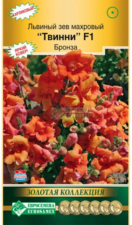 Львиный зев – универсальное растение, способное украсить любой приусадебный участок. Этот красавец уже давно не гость, а привычный обитатель цветников. В солнечное и тёплое лето раскрасит сочными красками самый унылый участок. Его присутствие моментально оживляет даже невзрачный уголок сада. Львиный зев серии Твинни- настоящая находка для любителей этой культуры, он прекрасен, эффектен и ошеломляюще красив! Цветник или контейнер из этого чудесного махрового растения бронзовой окраски смотрится очень ярко и привлекательно. Глядя на эти яркие цветы, невольно восхищаешься ими и думаешь, до чего же уникальна эта удивительная окраска. Эта культура смотрится просто великолепно, что позволяет использовать ее в самом широком спектре озеленения. Высота растения-25 см
