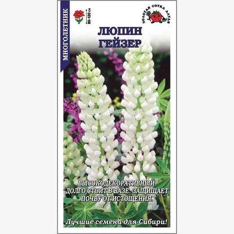 Высокодекоративное морозостойкое растение с выступающими над ажурной листвой прямостоячими цветоносами. Множество мелких цветков белого цвета собраны в плотные соцветия-свечи длиной 35-50 см. Люпин используют в миксбордерах, высаживают одиночно или группами на газоне. Он прекрасно подходит для срезки в букеты, долгое время не теряя декоративности. Обогащает почву азотом, защищая ее от истощения.