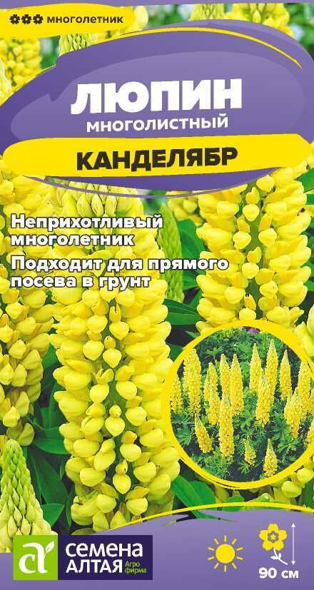 Нарядный эффектноцветущий травянистый многолетник, называемый королем сада. Растение образует несколько цветоносов высотой до 90 см, которые в нижней части украшены красивыми пальчато-сложными листьями на длинных черешках, сверху несут длинные (до 40 см) плотные кистевидные соцветия, собранные из ярко-желтых цветков. Станет прекрасным украшением для неприглядной территории, при этом благотворно воздействует на почвенный состав. Используется как акцентное растение, является ярким компонентом миксбордеров, клумб, рабаток. Светолюбивое зимостойкое растение, обогащающее почву азотом. Предпочитает солнечное местоположение. К почвам нетребовательно, но лучшего развития достигает на суглинистых слабокислых или слабощелочных почвах без свежей органики. Посевы на рассаду проводят в начале марта, лучше сеять в торфяные горшочки. Глубина заделки семян – 2 см. При температуре +15-20°С всходы появляются через 10-20 дней. После появления 2-3-х настоящих листочков рассаду вместе с горшочками высаживают в открытый грунт на постоянное место. Посадочный интервал – 40-50 см. Цветение на второй год в конце мая – июне. Вовремя проведённая обрезка даёт возможность многолетнику зацвести ещё раз в конце летнего периода. В первый год цветение нежелательно. Возможен прямой посев семян в открытый грунт в апреле или под зиму, в конце октября. Семена заделывают в грунт на глубину 2 см, участок мульчируют торфом, весной люпин дружно взойдет и зацветет к августу.
