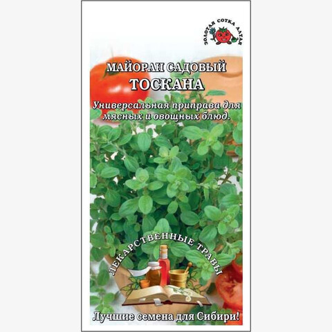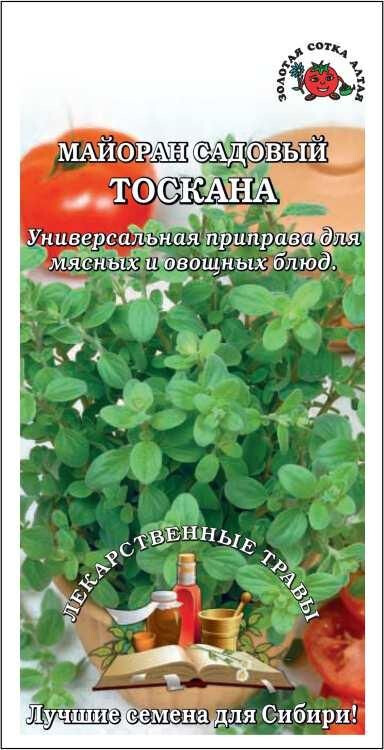 Многолетнее пряно-вкусовое растение, выращиваемое как однолетник. Образует плотные прямостоячие кусты высотой до 40 см. Сорт Тоскана относится к популяции сильно облиственных майоранов, предназначенных для получения пряной зелени. Цветущие растения привлекают большое количество бабочек. Обладает нежным и ненавязчивым пряным ароматом и легким терпким вкусом, что делает его универсальной приправой как для мясных, так и для овощных блюд. В высушенном виде в качестве настоя способствует укреплению памяти.