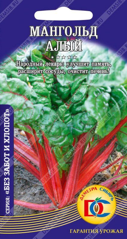 Мангольд, или листовая свекла - салатный листовой деликатес. Вкусный, полезный, урожайный и раннеспелый (30-40 дней до получения ранней зелени и 80-90 до товарной спелости), устойчив к цветушности. Содержит много полезных веществ, витаминов и минералов, при этом оставаясь крайне низкокалорийным и вкусным продуктом. Растение холодостойкое, влаголюбивое. Неприхотлив и полезен, обладает высокими декоративными качествами, его черешки окрашены в сочный красный цвет, листья темно-зеленые. В кулинарии черешки и листья МАНГОЛЬДА используют для приготовления голубцов, супов, хороши они также как начинка для пирогов.