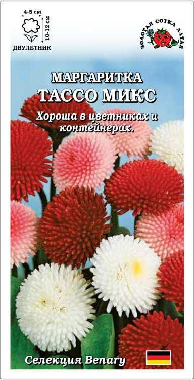 Маргаритки серии Tasso используются в альпинариях, для обсадки водоемов и в качестве почвопокровников при создании ковровых клумб, необыкновенно хороши в контейнерах. Побеги короткие, прочные. Соцветия-помпончики многочисленные, малинового, красного, розового или белого цвета. Прекрасно сочетаются с другими весеннецветущими цветами.
