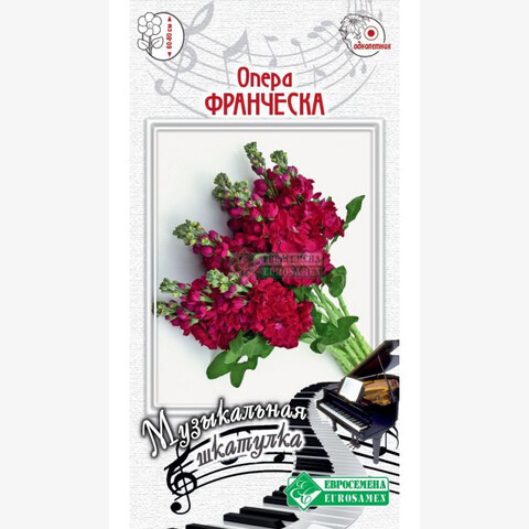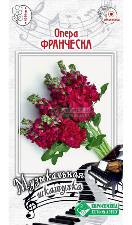 Франческа! Франческа, что ты сделала со мной!- знаменитые строки оперы С. Рахманинова Франческа да Рамини, в честь которой и носит свое имя маттиола Опера Франческа. Маттиола ( левкой) Опера Франческа - это, прежде всего, неповторимый аромат, невероятной красоты соцветия и именно по этой причине она стала таким популярным растением для посадки вдоль бордюров, возле террас, беседок, окон дома, а также для срезки с целью составления чудесных букетов. Цветки крупные, махровые, яркой окраски, собранные в кистевидные соцветия, широко используются также в цветниках различного типа, при озеленении балконов, для посадок в вазоны и контейнеры. С наступлением летнего вечера цветы щедро дарят свой приятный и чудодейственный аромат. Разновидностей левкоев много – более 600, они различаются по высоте, окраске и форме цветка, типу ветвления.