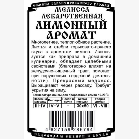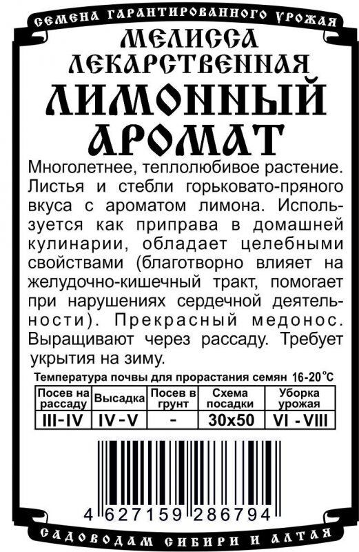 Многолетнее, теплолюбивое растение. Листья и стебли горьковато-пряного вкуса с ароматом лимона. Используется как приправа в домашней кулинарии, обладает целебными свойствами (благотворно влияет на желудочно-кишечный тракт, помогает при нарушениях сердечной деятельности). Прекрасный медонос. Выращивают через рассаду. Требует укрытия на зиму.