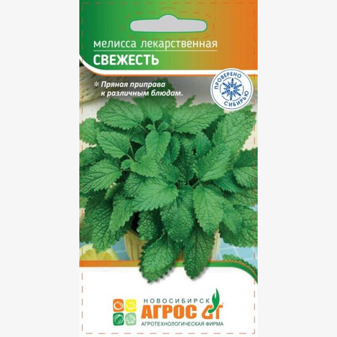 Многолетнее холодостойкое растение. Хороший медонос. Листья и молодые побеги мелиссы используют в свежем и сушеном виде как пряную приправу к различным блюдам. Чай из мелиссы обладает ярко выраженным успокаивающим эффектом. За сезон проводят 2-3 срезки зелени. На одном месте может расти до 10 лет. Особенности выращивания: растениям необходимы своевременные поливы, прополки, рыхления и подкормки. Убирают урожай перед цветением. Для перезимовки растения окучивают. 60 IV V V-VI 25x30 VI-IX