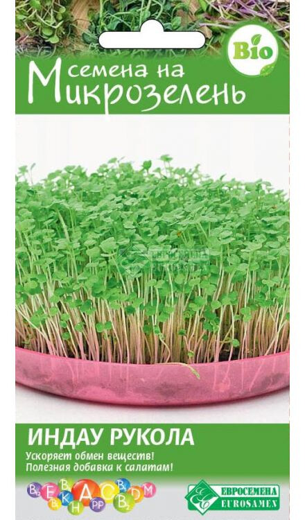 Микрозелень — это не только мода, но и экологически чистый продукт! В нежных молодых проростках содержится больше витаминов и важных для нашего организма элементов, чем в самих овощах. В качестве микрозелени можно выращивать практически все культуры. За первые 10 дней своей жизни молодая зелень не успевает накопить в себе вредных веществ из атмосферы, поэтому несет в себе максимум пользы. Она отличается по вкусу в зависимости от культуры. Ростки руколы - природный источник йода, ценятся за сбалансированное сочетание эфирных масел, витаминов, каротина и минеральных веществ, их потребление благотворно влияет на обмен веществ в организме, обеспечивая выведение холестерина и укрепляя нервную систему. В состав входят семена индау (руколы) Сицилия