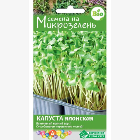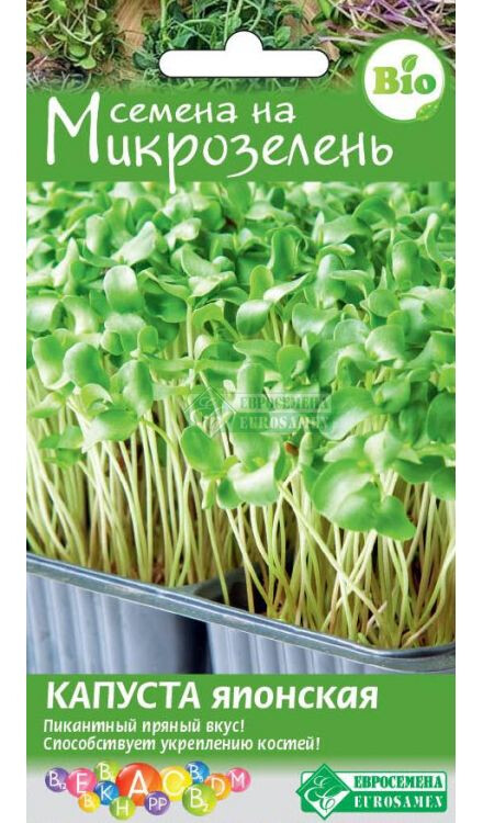 Микрозелень — это не только мода, но и экологически чистый продукт! В нежных молодых проростках содержится больше витаминов и важных для нашего организма элементов, чем в самих овощах. В качестве микрозелени можно выращивать практически все культуры. За первые 10 дней своей жизни молодая зелень не успевает накопить в себе вредных веществ из атмосферы, поэтому несет в себе максимум пользы. Она отличается по вкусу в зависимости от культуры. Нежные ростки японской капусты обладают мягким островатым вкусом, напоминающим руколу. Они добавят приятной остроты бутербродам, усилят яркость, аромат и питательную ценность салатов. Микрозелень капусты японской - целый калейдоскоп витаминов и минеральных веществ. В состав входят семена капусты японской Мизуна.