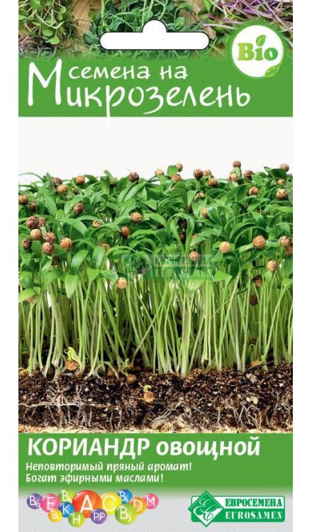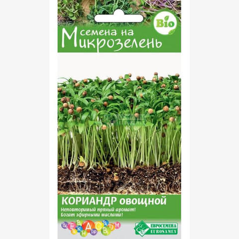 Микрозелень — это не только мода, но и экологически чистый продукт! В нежных молодых проростках содержится больше витаминов и важных для нашего организма элементов, чем в самих овощах. В качестве микрозелени можно выращивать практически все культуры. За первые 10 дней своей жизни молодая зелень не успевает накопить в себе вредных веществ из атмосферы, поэтому несет в себе максимум пользы. Она отличается по вкусу в зависимости от культуры. Кориандр- полезная, с неповторимым пряным ароматом и удивительным вкусом микрозелень , прекрасно разнообразит вкус свежего овощного салата, супа, рыбных и мясных блюд. Употребление микрозелени кориандра улучшает работу пищеварительной и сердечно - сосудистой системы, является отличной профилактикой простудных заболеваний, а также помогает в очищении организма от токсинов и шлаков. В состав входят семена кориандра овощного Армянский.