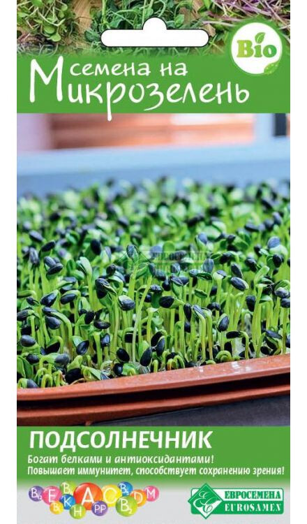 Микрозелень — это не только мода, но и экологически чистый продукт! В нежных молодых проростках содержится больше витаминов и важных для нашего организма элементов, чем в самих овощах. В качестве микрозелени можно выращивать практически все культуры. За первые 10 дней своей жизни молодая зелень не успевает накопить в себе вредных веществ из атмосферы, поэтому несет в себе максимум пользы. Она отличается по вкусу в зависимости от культуры. Хрустящие и сочные ростки подсолнечника обладают ярко выраженным ароматом и вкусом молодых семечек - отличное дополнение для разнообразных овощных салатов. Микрозелень его является ценным натуральным природным концентратом высококачественных растительных белков, незаменимых жирных кислот, широкого набора микроэлементов и витаминов. В состав входят семена подсолнечника Лакомка.