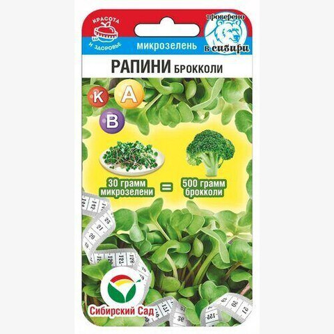 Ранняя зеленная культура из семейства капустных , не формирующая кочан. Её рыхлые соцветия похожи на молодые головки брокколи. Рапини ценится за большое количество полезных веществ, а также за нежный ореховый аромат и пикантный вкус. В 30 г микрозелени Рапини готовой к употреблению уже через 10-14 дней, содержится столько же полезных веществ сколько в 500г капусты брокколи. Молодые ростки Рапини-брокколи темно-зеленого цвета, хрустящие, сочные, и нежные. Отлично подходят для использования в спортивном питании, салатах, мясных, рыбных блюдах и смузи. Микрозелень очищает организм, помогает вывести соли, укрепляет иммунитет, дает молодость коже. Может круглогодично выращиваться на домашних подоконниках.