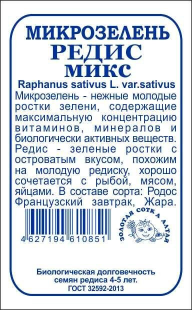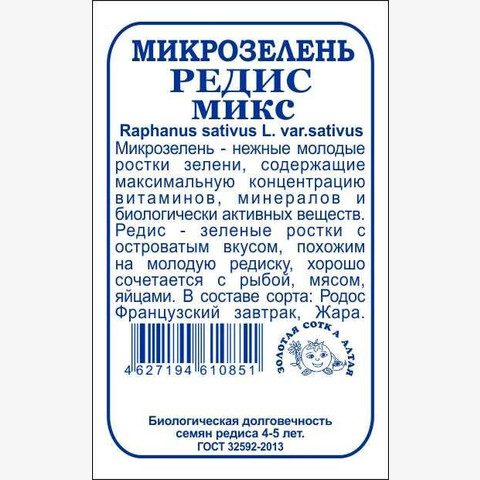 Микрозелень (микрогрин) — это современный суперфуд! Микро-зелень проста в выращивании, содержит намного больше витаминов и важных элементов, чем взрослые растения, подходит для круглогодичного возделывания. Редис богат витаминами, минеральными солями и эфирными маслами. Ростки немного хрустящие, с островатым вкусом, похожим на молодую редиску. Идеальная приправа к салатам и мясным блюдам.