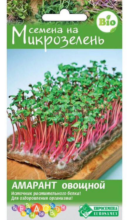 Микрозелень — это не только мода, но и экологически чистый продукт! В нежных молодых проростках содержится больше витаминов и важных для нашего организма элементов, чем в самих овощах. В качестве микрозелени можно выращивать практически все культуры. За первые 10 дней своей жизни молодая зелень не успевает накопить в себе вредных веществ из атмосферы, поэтому несет в себе максимум пользы. Она отличается по вкусу в зависимости от культуры. Амарант обладает горьковато-ореховым вкусом, служит дополнением к любому блюду, придаст нежный вкус мясу, рыбе, овощам и витаминизированным коктейлям. Ежедневное употребление ростков амаранта даже в небольших количествах способствует оздоровлению и омоложению организма. В состав входят семена амаранта овощного Крепыш.