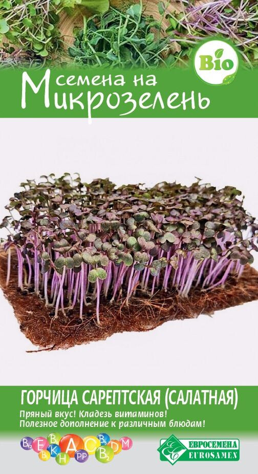 Микрозелень — это не только мода, но и экологически чистый продукт! В нежных молодых проростках содержится больше витаминов и важных для нашего организма элементов, чем в самих овощах. В качестве микрозелени можно выращивать практически все культуры. За первые 10 дней своей жизни молодая зелень не успевает накопить в себе вредных веществ из атмосферы, поэтому несет в себе максимум пользы. Она отличается по вкусу в зависимости от культуры. Горчица Ред Гигант – скороспелый сорт, зелень которой готова к употреблению уже через 2-3 недели после посева. Листочки имеют освежающий пряно-острый вкус, в которых содержится высокое содержание витаминов и биологически активных веществ, используемых в салатах и гарнирах. Урожайность 2-3 кг/кВ.м.