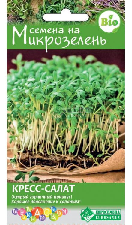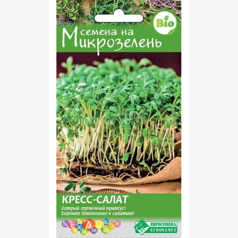 Микрозелень — это не только мода, но и экологически чистый продукт! В нежных молодых проростках содержится больше витаминов и важных для нашего организма элементов, чем в самих овощах. В качестве микрозелени можно выращивать практически все культуры. За первые 10 дней своей жизни молодая зелень не успевает накопить в себе вредных веществ из атмосферы, поэтому несет в себе максимум пользы. Она отличается по вкусу в зависимости от культуры. Кресс-салат - микрозелень со специфическим запахом и острым горчичным привкусом. Хорошее дополнение к гарниру, соусу и салату. Очень быстро растёт (5 дней с момента посева). Богата каротином, витаминами группы B, железом и магнием. В состав входят семена кресс салата Весенний.