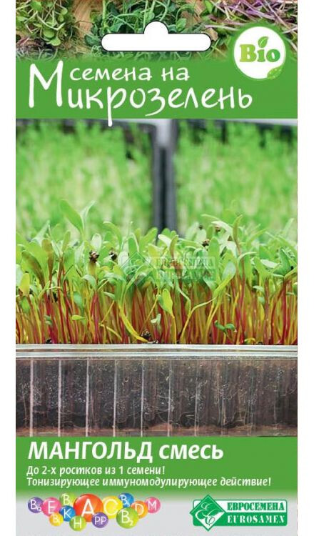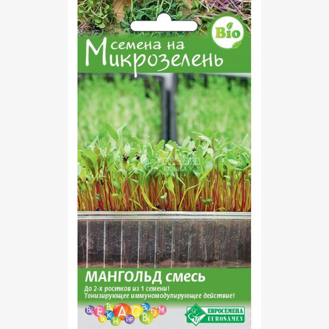 Микрозелень — это не только мода, но и экологически чистый продукт! В нежных молодых проростках содержится больше витаминов и важных для нашего организма элементов, чем в самих овощах. В качестве микрозелени можно выращивать практически все культуры. За первые 10 дней своей жизни молодая зелень не успевает накопить в себе вредных веществ из атмосферы, поэтому несет в себе максимум пользы. Она отличается по вкусу в зависимости от культуры. Ростки мангольда имеют сладковатый, свежий свекольный вкус и мягкое послевкусие, станут прекрасным дополнением и украшением к различным блюдам. Из одного семени вырастает до 2-3 ростков. Повышенная концентрация витамина К способствует очищению крови и обеспечивает её нормальную свертываемость. В состав входят семена мангольда Рубин и Изумруд.