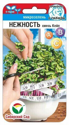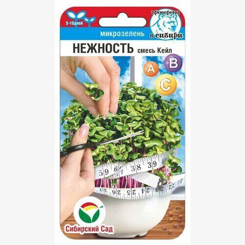 Смесь скороспелых сортов восточной капустной зелени, не образующих кочан. Характеризуется широким набором микроэлементов, полезных для организма человека. Идеально подходит для быстрого выращивания микрозелени в домашних условиях. Имеет сбалансированный мягкий вкус со слегка заметной пикантной остринкой, не раздражает органы пищеварения, отлично подходит для здорового питания детей и взрослых в салатах и витаминных смузи. Смесь готова к употреблению на 5-10 день при высоте побегов 4-6см, до появления настоящих листьев. Капустная смесь Кейл невероятно полезна и во много раз превосходит обычную капусту по содержанию витаминов А,С, В, магнию, железу, калию и др. В домашней кулинарии освежает вкус салатов, добавляет изюминку и украшает любое кулинарное блюдо. Легко выращивается на домашних подоконниках с условием поддержания влажности и освещением не менее 15 часов в сутки.