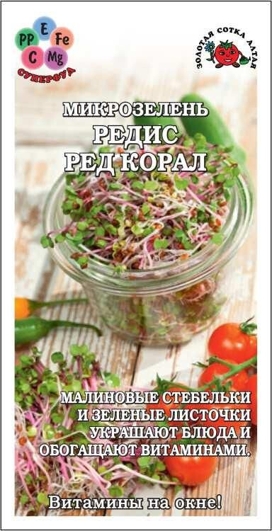 Микрозелень (микрогрин) — это современный суперфуд! Микрозелень проста в выращивании, богата витаминами и другими важными элементами, подходит для круглогодичного возделывания в комнатных условиях. Редис содержит эфирные масла, комплекс витаминов и минеральных элементов. Ростки немного хрустящие и жгучие на вкус, похожи на сам корнеплод. Идеальная приправа к салатам и мясным блюдам.