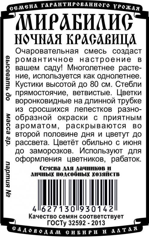 Очаровательная смесь создаст романтичное настроение в вашем саду! Многолетнее растение, используется как однолетнее. Кустики высотой до 80 см. Стебли прямостоячие, ветвистые. Цветки воронковидные на длинной трубке из сросшихся лепестков разнообразной окраски с приятным ароматом, раскрываются во второй половине дня и цветут до рассвета. Цветёт обильно с июня до заморозков. Используют для оформления цветников, рабаток.