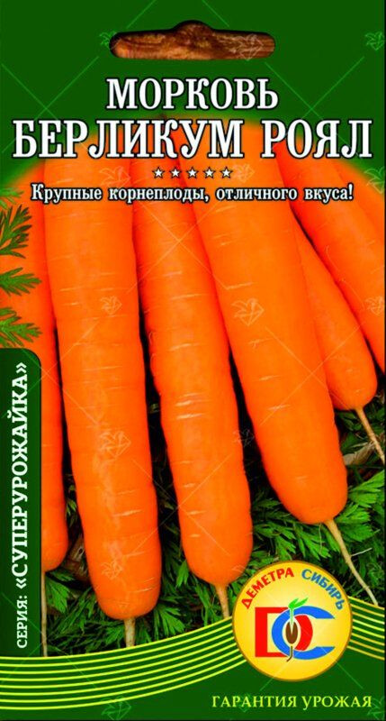 Позднеспелый (110-130 дней) урожайный сорт. Корнеплоды цилиндрические (сортотип Берликум) с тупым кончиком, ярко-оранжевые, гладкие, длиной 20-23 см, легко выдергиваются при уборке. Масса 120-190 г. Мякоть плотная, очень сочная и сладкая. Универсального использования, отлично хранится.