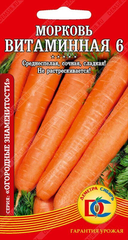 Среднеспелый, высокоурожайный сорт. Корнеплоды цилиндрические, тупоконечные, длиной 17 см, массой до 165 г. Мякоть красно-оранжевая, сердцевина маленькая, круглая, по цвету не отличается от мякоти, ароматная, сладкая. Высокие вкусовые качества, повышенное содержание каротина, отличная лежкость. Подходит для ранневесеннего и подзимного посева.