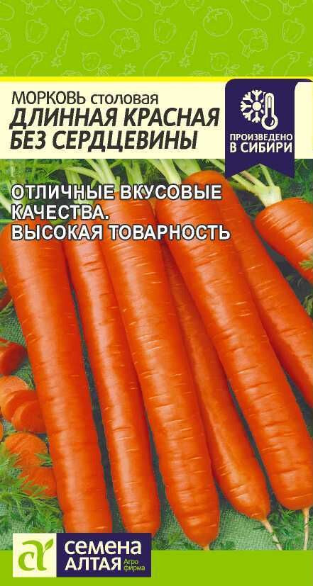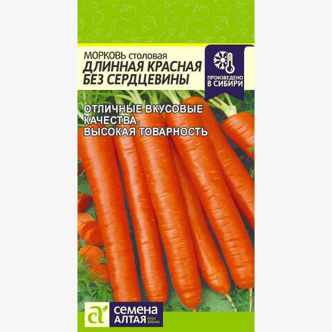 Популярный урожайный сорт среднепозднего срока созревания. Корнеплоды цилиндрические с притупленным кончиком, оранжево-красные, длиной 19-23 см, с маленькой сердцевиной или без нее. Сорт отличается высокой товарностью и отличными вкусовыми качествами. Место посадки: выровненные участки с рыхлой плодородной супесчаной или легкосуглинистой почвой Освещение: обильное, плохо переносит затенение Предпосевная подготовка: не требуется. Для более дружных всходов допускается на 15 минут замочить в воде температурой 50°С Сроки посева: сразу после оттаивания почвы (апрель-май), либо середина июня, либо осенью после промерзания грунта (сухим способом) Посев на рассаду: не предусмотрен Посев в грунт: за 1-2 дня до посева проводят обильный полив, рыхление и выравнивание почвы. Семена высевают в предварительно увлажненные борозды на глубину 1-2 см (чем больше в почве песка, тем глубже), оставляя междурядья 10 см и 3-4 см между растениями. Присыпают грунтом, хорошо уплотняют. После посева проводят еще один полив дождеванием. Для сохранения влажности почвы посевы накрывают агроволокном до появления всходов. Полив проводят поверх укрывного материала Пикировка/перевалка: не предполагается Уход: всходы прореживают на расстояние 3-4 см. Не выносит свежего навоза, при его внесении образует искривленные корнеплоды с множеством корней. На бедных почвах проводят подкормку азофоской в количестве 15г/10 л воды один раз в месяц Сбор урожая: август - октябрь