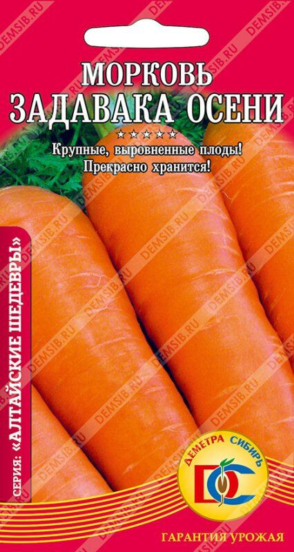 Новый урожайный позднеспелый (117-130 дней) сорт. Корнеплоды конической формы с заостренным кончиком (сортотип Флакке), красно-оранжевого цвета, длинной 25 см, массой до 350 гр. Мякоть ароматная, сочная, отличного вкуса. Отличается отличным внешним видом и выравненностью плодов. Один из лучших сортов для хранения.
