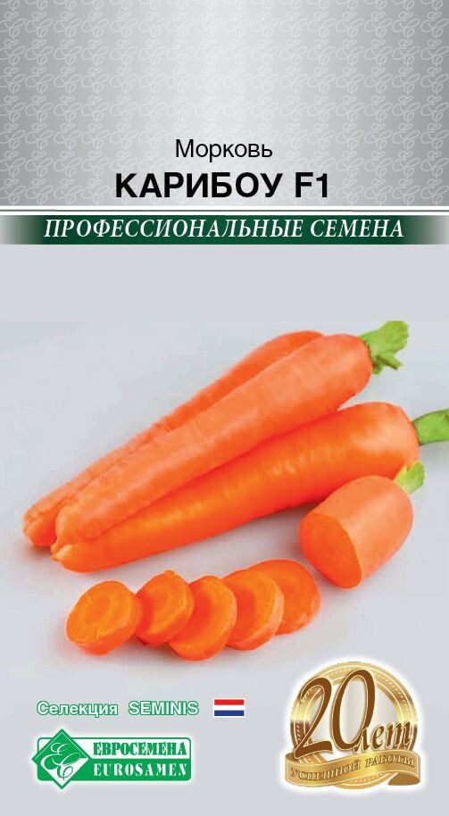 Ярко-оранжевый корнеплод растет практически в каждом огороде и продается в любом продуктовом магазине. Ее добавляют в супы, в десерты и даже в напитки. Такая всенародная любовь к моркови не случайна, ведь она - настоящий кладезь витаминов и полезных микроэлементов. Карибоу- среднепоздний гибрид моркови нантского типа. Корнеплод цилиндрический, длиной 19-21 см, диаметром 3-4 см, с закругленным кончиком. Внутренняя окраска насыщенно оранжевая, имеет приятный аромат и высокие вкусовые качества. Рекомендуется для потребления в свежем виде, переработки и длительного хранения (5-6 месяцев). Гибрид обладает прекрасными вкусовыми качествами, идеален для соков, пюре и салатов. Гибрид устойчив к цветушности и альтернариозу.