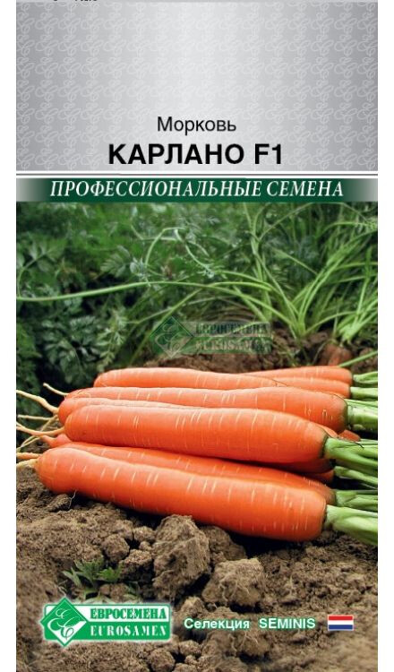 Ярко-оранжевый корнеплод растет практически в каждом огороде и продается в любом продуктовом магазине. Ее добавляют в супы, в десерты и даже в напитки. Такая всенародная любовь к моркови не случайна, ведь она - настоящий кладезь витаминов и полезных микроэлементов. Карлано - среднепоздний гибрид моркови (115-120 дней после всходов). Корнеплод цилиндрический, с тонкой и очень яркой сердцевиной, выровненный по форме и размеру, длиной 20-22 см, диаметром 2-3 см, с гладкой поверхностью. Мякоть темно-оранжевая, по вкусовым качествам очень сладкая, ароматная. Рекомендуется для потребления в свежем виде, переработки и длительного хранения. Характеризуются великолепным вкусом, ценится за отличные вкусовые качества, выравненность корнеплодов, хорошую лежкость и устойчивость к цветушности.
