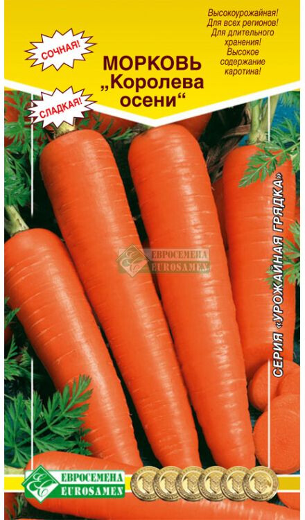 Сорт позднеспелый (период от всходов до технической спелости 125-135 дней), высокоурожайный. Корнеплод оранжевого цвета, очень крупный, мякоть сочная, нежная, сладкая. Рекомендуется для длительного хранения. Морковь богата витаминами В1, В2, С, ЗЗ, К. Морковный сок – отличное целебное средство при малокровии, заболеваниях сердечно-сосудистой системы, почек.