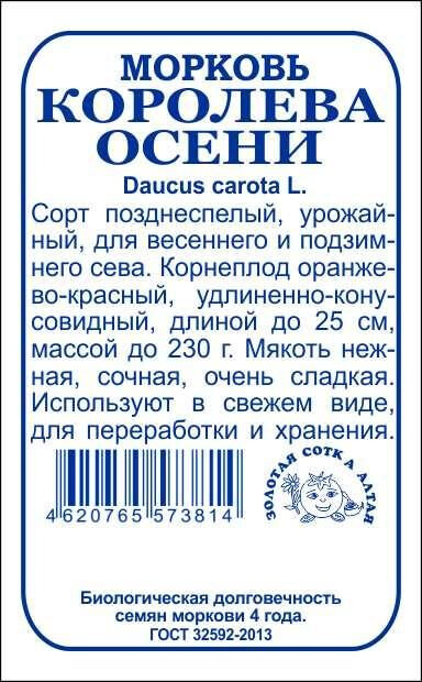 • Позднеспелый урожайный сорт. Корнеплод оранжево-красный, удлиненно-конусовидный, длиной до 25 см, массой до 230 г. Мякоть сочная, нежная, очень сладкая. Сорт прекрасно подходит для потребления в свежем виде, переработки и длительного хранения.