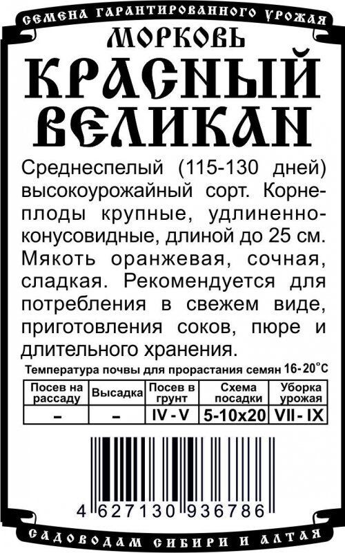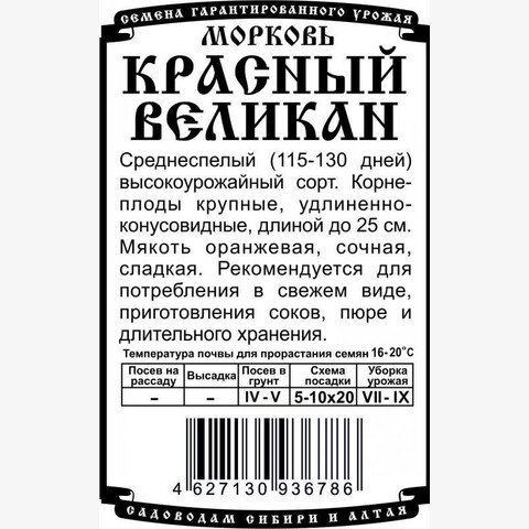 морковь Красный Великан 1,5гр Б/П /Деметра/