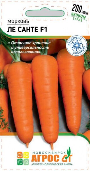 Среднеранний гибрид. Сортотип Шантане. Корнеплод конический, с тупым кончиком, высокой однородности, длиной 15-17 см, диаметром 4-5 см, насыщенно темнооранжевый, с очень гладкой поверхностью, сладкого вкуса. Гибрид обладает высокой урожайностью, устойчив к цветушности. Рекомендуется для использования в свежем виде и особенно для переработки и хранения. Особенности выращивания: посев проводить в очень влажную почву, избегая загущения; своевременное рыхление междурядий, полив и корневые подкормки. - - IV-V - 5х25 VIII-IX