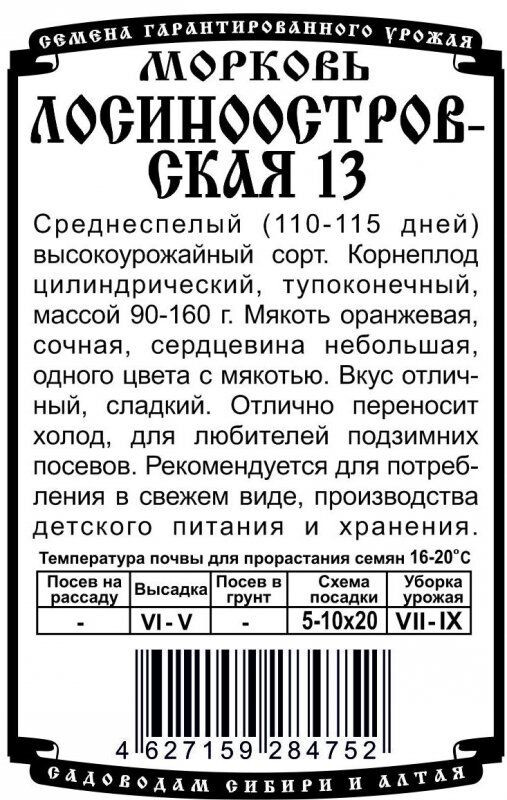 морковь Лосиноостровская 13 1,5 гр Б/П / Деметра