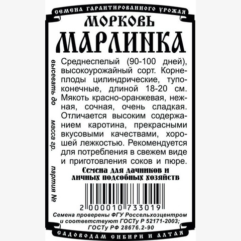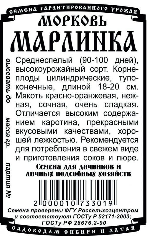 Среднеспелый (90-100 дней), высокоурожайный сорт. Корнеплоды цилиндрические, тупоконечные, длиной 18-20 см. Мякоть красно-оранжевая, нежная, сочная, очень сладкая. Отличается высоким содержанием каротина, прекрасными вкусовыми качествами и лежкостью. Рекомендуется для потребления в свежем виде, приготовления соков, пюре и длительного хранения.