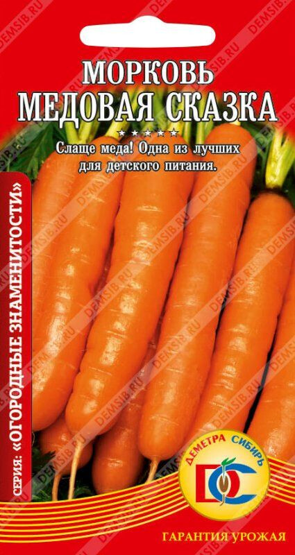 Среднеранний (70-100 дней), высокоурожайный сорт. Корнеплоды цилиндрические, со слегка заостренным кончиком, длиной 16-18 см, оранжево-красные, с маленькой сердцевиной, нежной, сочной, сладкой мякотью. Вкусовые качества отличные. Масса плода 120-210 г. Отличный сорт для детского питания, приготовления соков, непосредственного потребления и переработки. Подходит для ранне-весеннего и подзимнего посева Сорт устойчив к комплексу болезней, великолепно хранится, не теряя высоких вкусовых качеств.