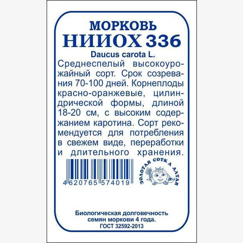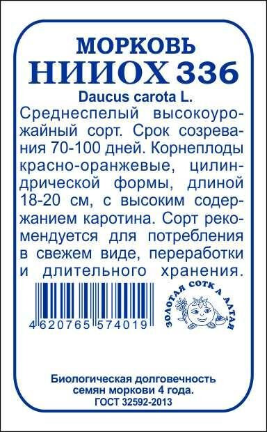 Среднеспелый высокоурожайный сорт. Срок созревания 70-100дней. Корнеплоды цилиндрической формы, красно-оранжевые, длиной 18-20 см, с высоким содержанием каротина. Сорт рекомендуется для потребления в свежем виде, приготовления соков, переработки и длительного хранения.
