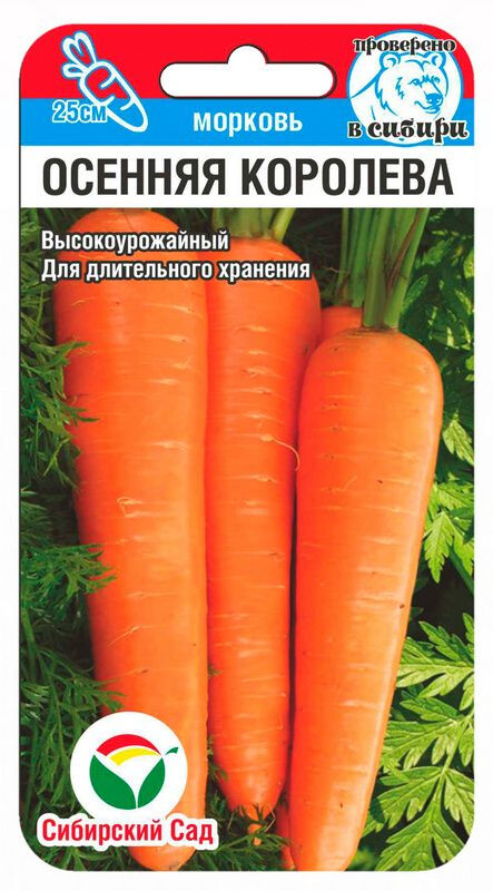 Замечательный высокоурожайный сорт для переработки, длительного хранения и употребления в свежем виде! Позднеспелый, период от полных всходов до технической спелости 110-120 дней. Корнеплоды крупные, цилиндрические, в нижней части слегка конической формы, насыщенно-оранжевого цвета, длиной до 25 см, выровненные, гладкие, средней массой 150-200 г. Не растрескиваются, без тенденции к образованию боковых корешков, верхняя часть не зеленеет. Мякоть нежная, сочная, с высоким содержанием каротина. Урожайность высокая. Великолепно хранится в зимнее время. Высев семян в хорошо подготовленную почву. При образовании 2-3 настоящих листьев формируют густоту растений, на расстоянии 4-5 см в рядке. Через 20-25 дней после появления всходов - провести подкормку азотными удобрениями. Спустя 15-20 дней внести фосфорно¬калийные удобрения. Для нормального развития моркови требуется много калия. Урожай собирают до начала заморозков.