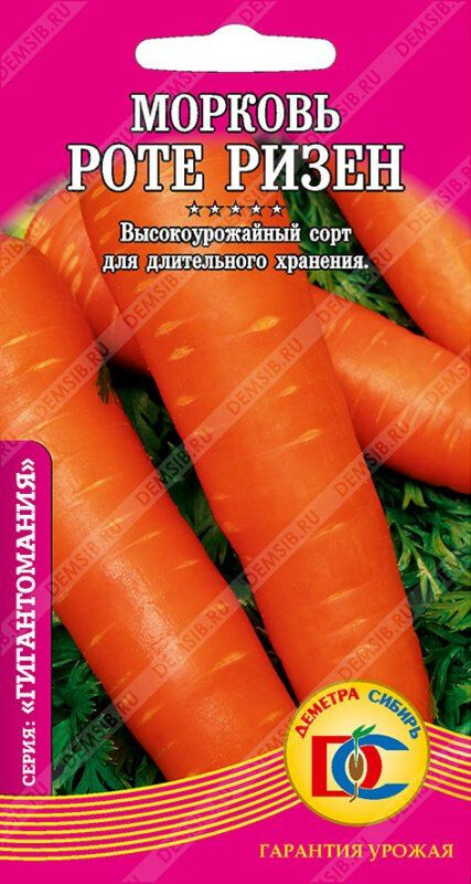 Высокоурожайный позднеспелый сорт, период вегетации 120-140 дней. Корнеплод удлиненно-конической формы, длиной 20-22 см, массой 150 гр, красно-оранжевый с небольшой сердцевиной. Рекомендуется для переработки и употребления в свежем виде. Ценится за высокую продуктивность, пригодность к длительному хранению и отличные вкусовые качества.