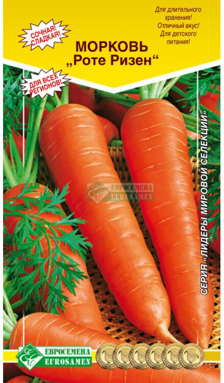 Позднеспелый, высокоурожайный сорт (сортотип Флакке) для потребления в свежем виде, хранения. Период вегетации 12-140 дней. Корнеплод конический длиной 20-22 см. Масса плодов до 150 г. Сердцевина и кора красно-оранжевого цвета. Вкусовые качества отличные. Богата витаминами В1, В2, С, ЗЗ, К. Морковный сок – отличное целебное средство при малокровии, заболеваниях сердечно-сосудистой системы, почек.