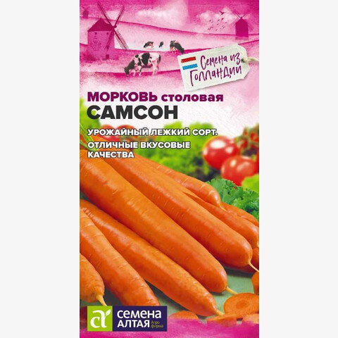 Среднеспелый (110-120 дней) сорт. Корнеплоды цилиндрической формы со слегка заостренным кончиком, длиной до 20-22 см, массой 125-150 г. Сорт ценится за урожайность и высокие вкусовые качества, за повышенное содержание каротина. Корнеплоды пригодны для длительного хранения. Место посадки: выровненные участки с рыхлой плодородной супесчаной или легкосуглинистой почвой Освещение: обильное, плохо переносит затенение Предпосевная подготовка: не требуется. Для более дружных всходов допускается на 15 минут замочить в воде температурой 50°С Сроки посева: сразу после оттаивания почвы (апрель-май), либо середина июня, либо осенью после промерзания грунта (сухим способом) Посев на рассаду: не предусмотрен Посев в грунт: за 1-2 дня до посева проводят обильный полив, рыхление и выравнивание почвы. Семена высевают в предварительно увлажненные борозды на глубину 1-2 см (чем больше в почве песка, тем глубже), оставляя междурядья 10 см и 3-4 см между растениями. Присыпают грунтом, хорошо уплотняют. После посева проводят еще один полив дождеванием. Для сохранения влажности почвы посевы накрывают агроволокном до появления всходов. Полив проводят поверх укрывного материала Пикировка/перевалка: не предполагается Уход: всходы прореживают на расстояние 3-4 см. Не выносит свежего навоза, при его внесении образует искривленные корнеплоды с множеством корней. На бедных почвах проводят подкормку азофоской в количестве 15г/10 л воды один раз в месяц Сбор урожая: август - октябрь