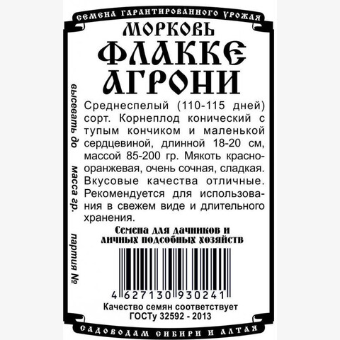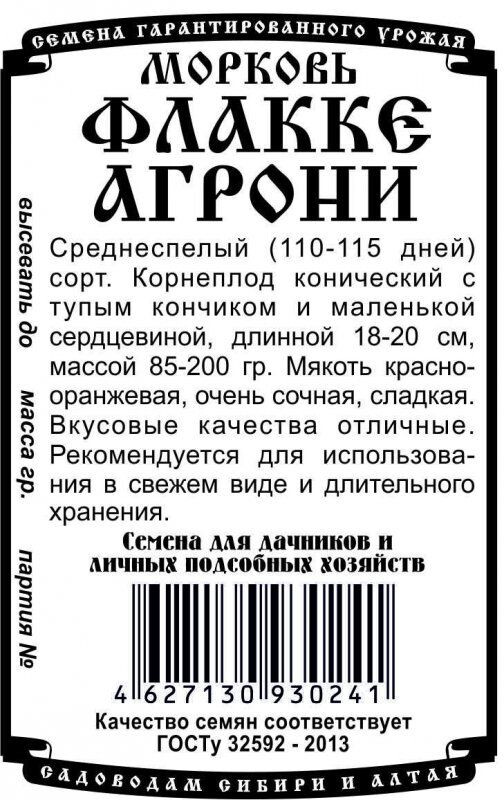 Среднеспелый (110-115 дней) сорт. Корнеплод конический с тупым кончиком и маленькой сердцевиной, длинной 18-20 см, массой 85-200 гр. Мякоть красно-оранжевая, очень сочная, сладкая. Вкусовые качества отличные. Рекомендуется для использования в свежем виде и длительного хранения.