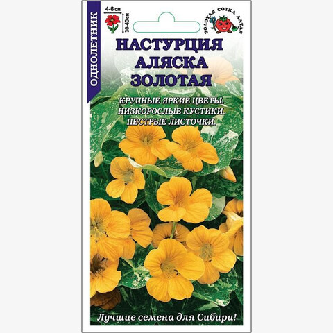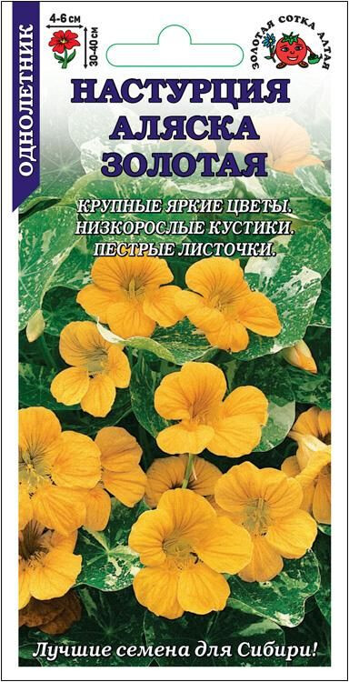 Красивоцветущее низкорослое растение с многочисленными побегами и пестрыми бело-зелеными листьями округлой формы. Цветы крупные и ароматные, насыщенно-желтые. Настурция прекрасно подходит для оформления цветников и контейнеров в саду и на балконе. Цветами украшают салаты, листья хороши в холодных закусках, а маринованные бутоны заменяют каперсы.