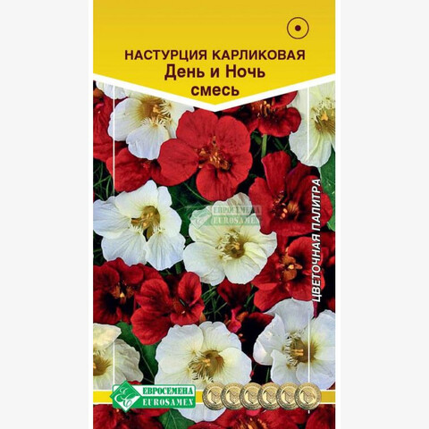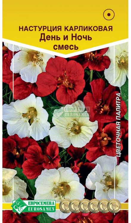 Настурция принадлежит к роду травянистых растений с южно-американскими корнями, ее можно встретить почти на каждом садовом участке. Несложные в уходе, яркие и радующие глаз цветы с целебными свойствами и неплохими вкусовыми качествами, очень популярны среди любителей флоры. Цветки настурции приятно пахнут. Если нужно оформить участок, расположенный на солнцепеке, задекорировать глухую стену или забор, оформить балкон или террасу - обратите свое внимание на данную культуру. День и Ночь - восхитительная смесь настурции с эффектными цветками красного и нежнейшего желтого цвета. Цветочки возвышаются и лучатся, словно маленькие огоньки, над мелкой листвой и компактным кустиком, выглядят невероятно красиво и декоративно. Что же касается продолжительности цветения, то это растение не имеет себе равных и одновременно распускает по 10-15 цветков. Высота растения-25 см Диаметр цветка-5 см