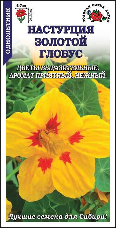 Прелестное неприхотливое растение. Кустик компактный, шаровидный. Листья округлые, светло-зеленые. Цветы крупные, махровые, ароматные, золотисто-желтого цвета с красными мазками. Настурцию высаживают в горшки, вазоны и ящики, используют не только для оформления различных цветников, но и в кулинарии.